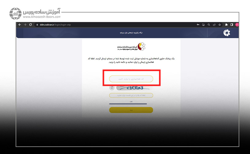 ۱- بعد از ورود به درگاه یکپارچه ذینفعان بازار سرمایه، کد ملی و رمز عبور خود را وارد کنید.