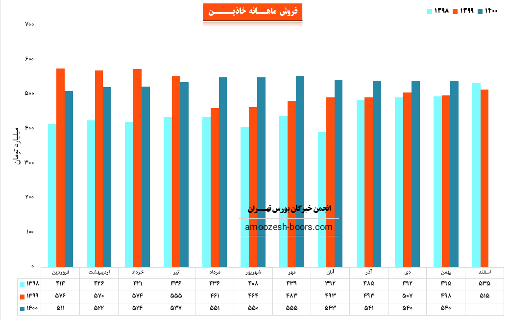 شرکت در خرداد ماه 590 میلیارد تومان فروخته که نسبت به ماه قبل 10% افزایش و نسبت به میانگین ماه های قبل 9% افزایش داشته است.