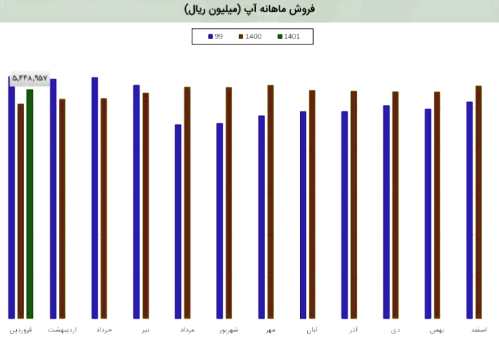 شرکت نسبت به دوره 1 ماهه مشابه سال قبل 7% افزایش درآمد داشته است همچنین 1.6 درصد کمتر از اسفند و تقریبا مشابه میانگین سال گذشته می باشد.