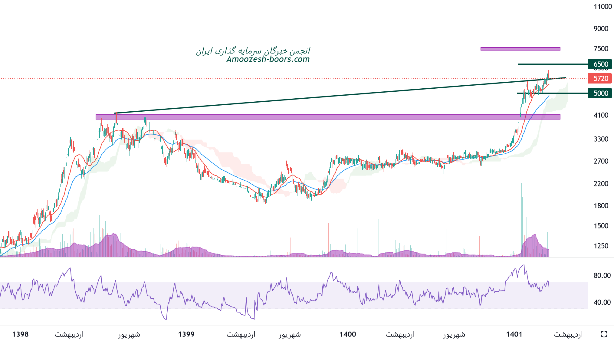 نماد اتکام در حال پولبک به محدوده مقاومتی شکسته شده میباشد، در صورت تثبیت در این محدوده، حرکت سهم اتکام تا 6500 ریال و بعد از آن 7500 ریال محتمل خواهد بود، همچنین در صورت از دست رفتن این محدوده حمایتی، حمایت بعدی 5000 ریال در نظر گرفته خواهد شد.