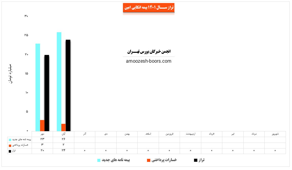 نماد اتکام (شرکت بیمه اتکایی امین) در انتهای مهر ماه مبلغ 22.7 میلیارد تومان از محل فروش حق بیمه درآمد و همچنین مبلغ 3.1 میلیارد تومان به عنوان خسارت پرداختنی داشته است. شرکت در این دوره تراز مثبت 19.5 میلیارد تومان (621%) را ثبت کرده است. تراز اتکام در این دوره نسبت به ماه قبل 18% کاهش و نسبت به میانگین ماه های قبل 94% افزایش داشته است. اتکام نسبت به دوره 1 ماهه مشابه سال قبل 50% افزایش تراز داشته است.