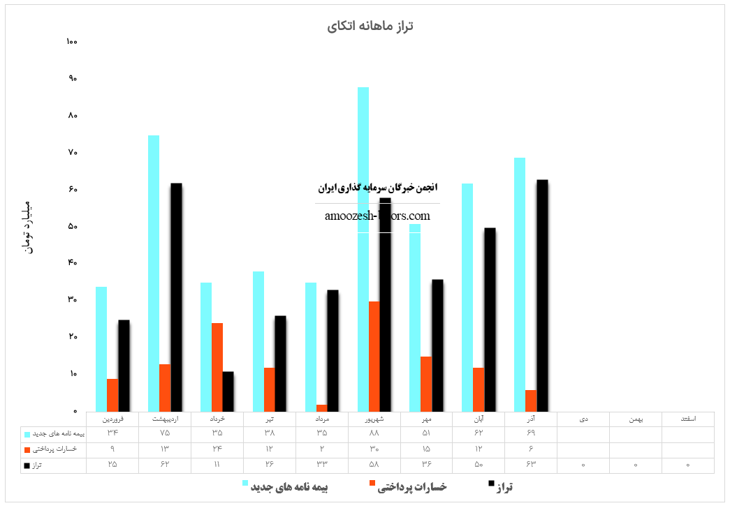 نماد اتکای ( اتکایی ) طی عملکرد ماهانه از محل حق بیمه صادره درآمد 62.3 میلیارد تومان را شناسایی نموده است که افزایش 21 درصدی در مقایسه با ماه گذشته داشته است.