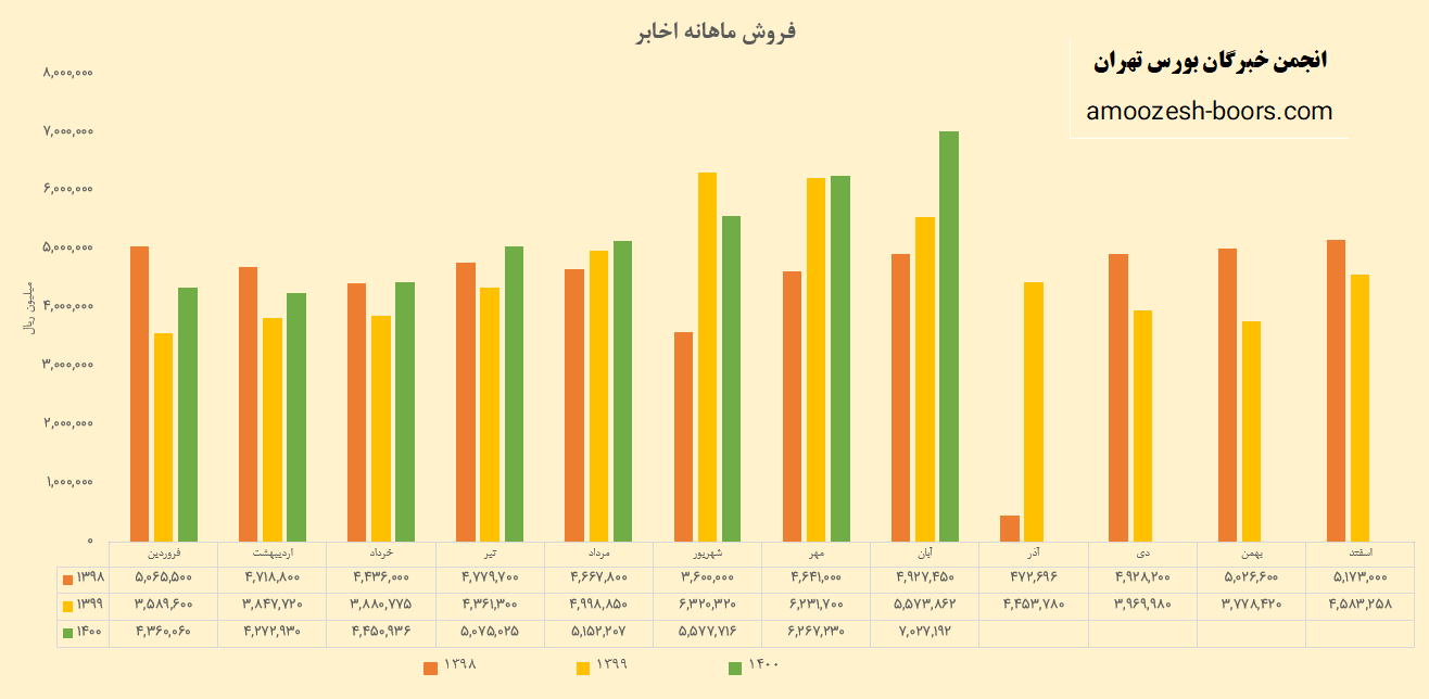 نماد اخابردر گزارش ماه آبان نسبت به مدت مشابه سال قبل (آبان 99) 26% افزایش فروش را داشته، همینطور نسبت به ماه گذشته 12% افزایش فروش داشته است اما این پایان کار نیست !