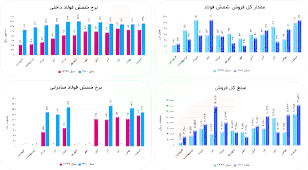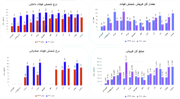 همچنین نرخ فروش داخلی شمش فولادی این شرکت نسبت به اسفند ماه حدود ۱۰ % رشد پیدا کرده است.