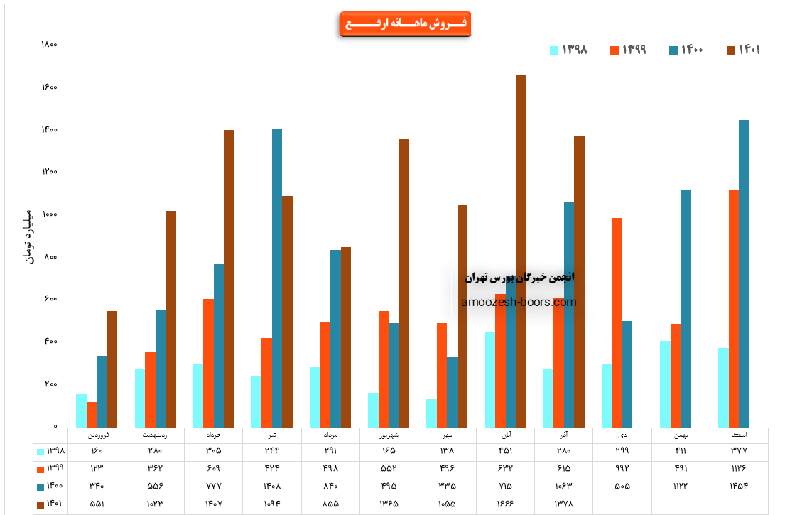 در موجوع سهم ارفع در طی عملکرد 8 ماهه مبلغ 90,178,757 میلیون ریال درآمد فروش داشته است که نسبت به مدت مشابه سال قبل 65% رشد داشته استو تا بحال موفق شده 94 درصد از بودجه سال گذشتهرا محقق نماید .