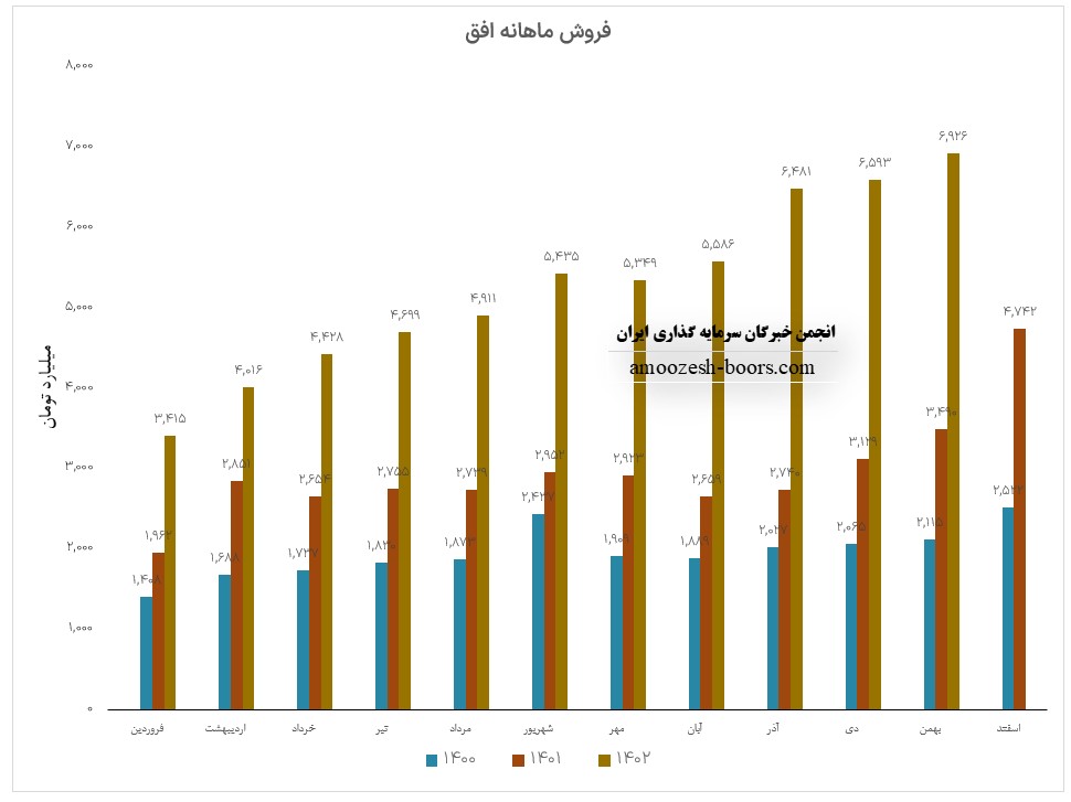 همچنین سهم افق با ثبت فروش 75300 میلیارد تومانی در پایان 12 ماهه منتهی به اسفند ماه 1402 توانست حدود 15 درصد بیش از پیشبینی فروش سالانه خود را محقق سازد.