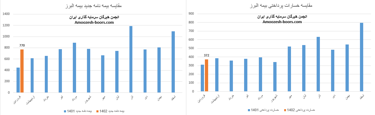 شرکت بیمه البرز با نماد البرز با افزایش 5 درصدی حق فروش بیمه نامه جدید درآمد خود را به 808 میلیارد تومان رساند، خسارات پرداختی نیز با افزایش 13 درصدی نسبت به ماه قبل به رقم 545.3 میلیارد تومانی رسید، تراز عملکرد بهمن ماه نماد البرز 48 درصد مثبت گزارش شده و مجموع درآمد نسبت به مدت مشابه طی عملکرد 11 ماهه 41% رشد داشته است.