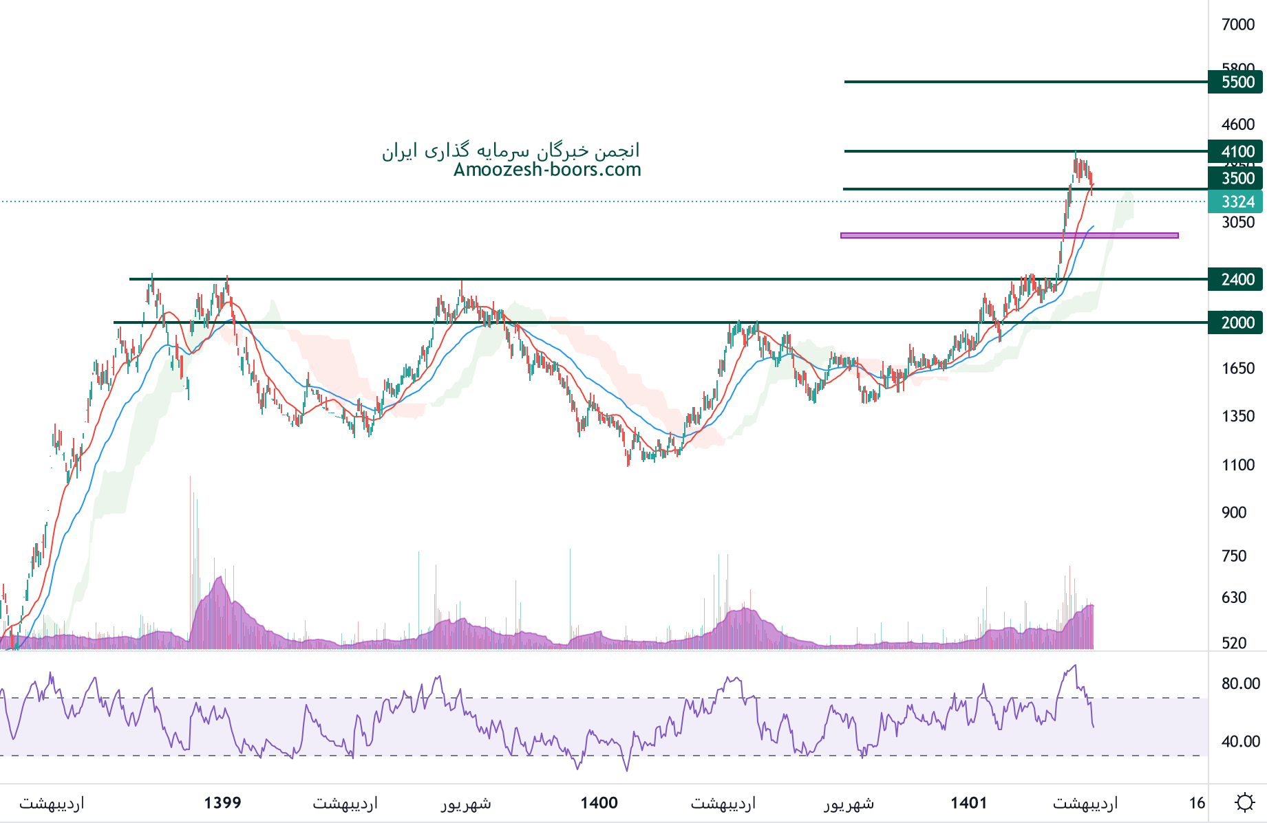 نماد البرز در حال اصلاح میباشد، در حال حاضر پیشنهاد به جایگزینی این نماد داده میشود، اولین محدوده حمایتی این سهم 3000 ریال ارزیابی خواهد شد، همچنین در صورت تثبی قیمت مقاومت های سهم به ترتیب 4100 و 5500 ریال در نظر گرفته خواهند شد.