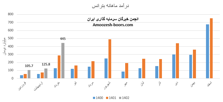 نماد بترانس با فروش 240.4 میلیارد تومانی چهارمین ماه از سال مالی خود را به اتمام رساند، فروش ماهانه سهم بترانس نسبت به متوسط ماهانه 7% و نسبت به مدت مشابه 50% رشد داشته است، درآمد ماهانه سترانس نسبت به ماه گذشته افت 46 درصدی داشته است، ترانسفورماتور قدرت به عنوان محصول اصلی بترانس کاهش 77 درصدی مقدار فروش نسبت به ماه گذشته را تجربه نموده است این در حالی است که نرخ فروش محصول رشد 42 درصدی داشته، مجموع عملکرد 4 ماهه بترانس نسبت به مذت مشابه رشد 59 درصدی داشته و طی این مدت 26% از کل فروش سال قبل محقق گردیده است.