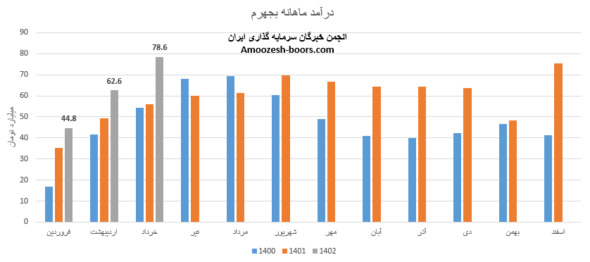 مجموع درآمد سهم بجهرم 28% نسبت به مدت مشابه رشد داشته و طی این مدت 47% از کل درآمد سال گذشته محقق گردیده است.