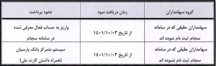 بدینوسیله به اطلاع کلیه سهامداران محترمی که در تاریخ تشکیل مجمع عمومی عادی سالیانه (۱۹۰۱/۰۳/۲۹) سهامدار شرکت گروه دارویی برکت (سهامی عام) خواهند بود می رساند؛ سود سهام عملکرد سال مالی منتهی به ۱۶۰۰/۱۲/۲۹ سهامداران حقیقی به شرح زیر پرداخت خواهد شد.
