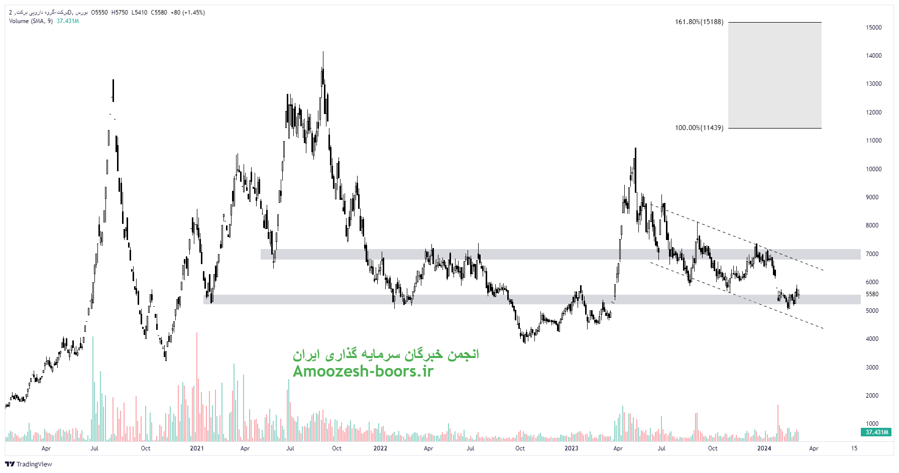 سهم برکت بر روی حمایت مهم ناحیه ۵۴۰ تومان قرار گرفته است. لذا در صورت ایجاد تقاضا در کلیت بازار و عبور از مقاومت ناحیه ۷۰۰ تومان، سهم برکت در مدار صعود قرار گرفته و در همین مسیر مقاومتهای مهم ۱۱۰۰ و ۱۵۰۰ تومان را پیش روی خود میبیند. همچنین در صورت برگشت مجدد مهمترین حمایت سهم برکت ناحیه کف کانال نزولی کوتاه مدت یعنی ناحیه ۴۵۰ تومان در نظر گرفته خواهد شد.