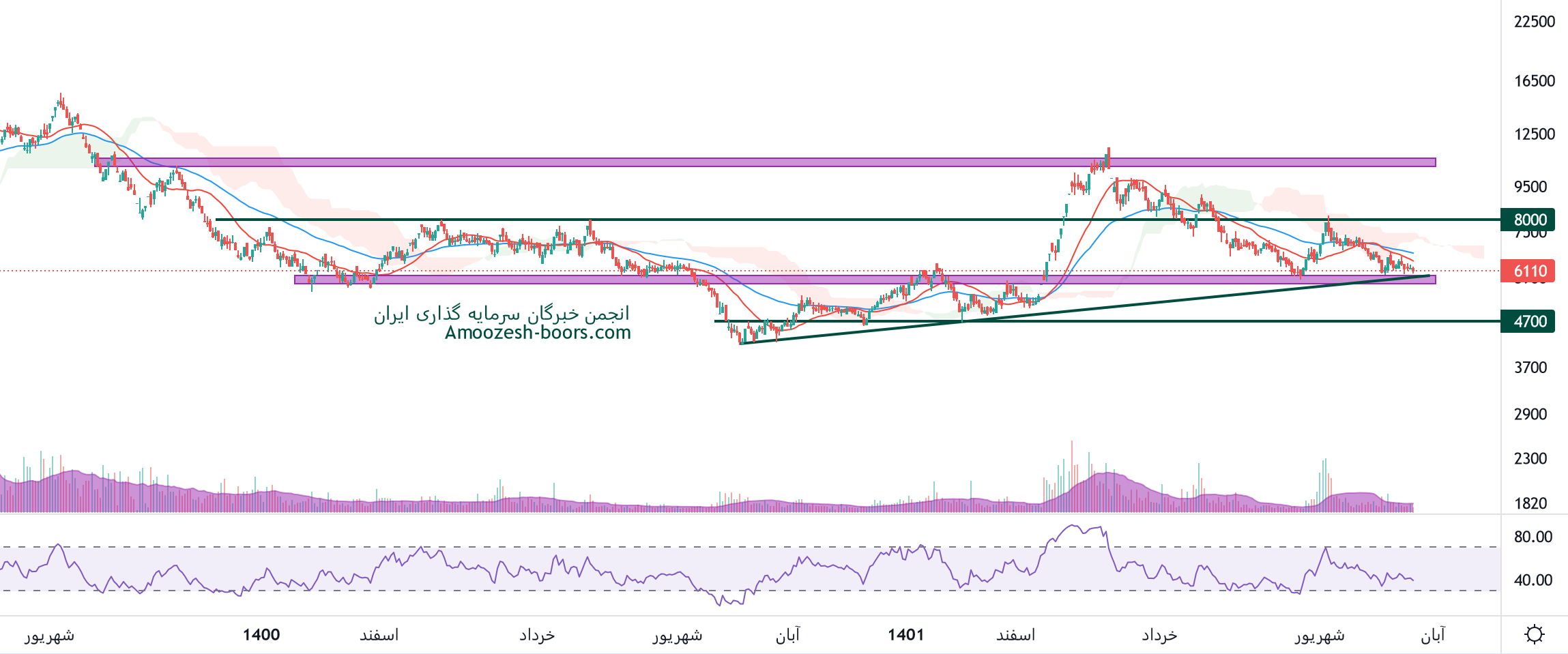 در بررسی نمودار تکنیکال برکت قیمت سهم محدوده حمایتی 6000 ریال را دارا میباشد، در صورت تثبیت قیمت، اولین مقصد سهم 8000 ریال در نظر گرفته خواهد شد، همچنین در صورت از دست رفتن محدوده حمایتی ذکر شدهف حمایت بعدی نماد برکت 4700 ریال در نظر گرفته خواهد شد.