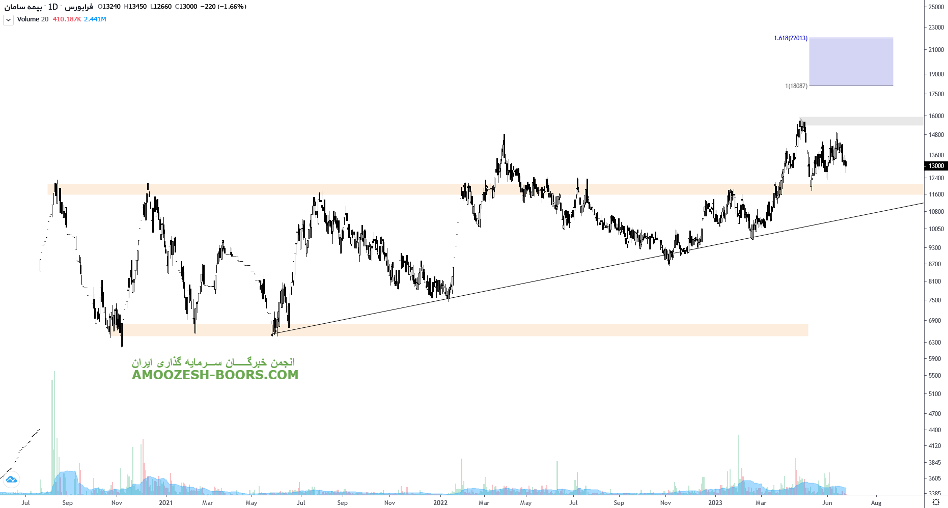 قیمت سهم بساما پس از برخورد به مقاومت ناحیه ۱۶۰۰ تومان وارد اصلاح شده و اکنون حمایت اصلی سهم بساما ناحیه ۱۲۰۰ تومان در نظر گرفته خواهد شد که در صورت حفظ این ناحیه اولین مقاومت سهم بساما ناحیه ۱۶۰۰ تومان و در صورت شکست مقاومت بعدی سهم بساما ناحیه ۱۸۰۰ تومان در نظر گرفته خواهد شد.