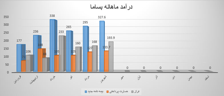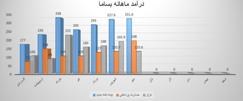 نماد بساما (شرکت بیمه سامان) درانتهای مهر ماه مبلغ 331.6 میلیارد تومان از محل فروش حق بیمه درآمد و همچنین مبلغ 198 میلیارد تومان به عنوان خسارت پرداختنی داشته است. بساما در این دوره تراز مثبت 133.6 میلیارد تومان (67%) را ثبت کرده است. تراز شرکت در این دوره نسبت به ماه قبل 31% کاهش و نسبت به میانگین ماه های قبل 54% افزایش داشته است. بساما نسبت به دوره 1 ماهه مشابه سال قبل 24% افزایش تراز داشته است.
