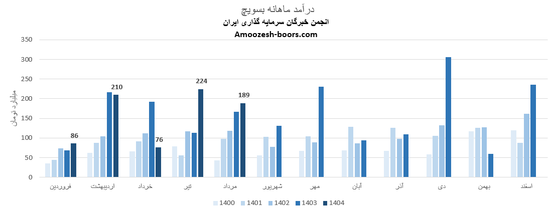 سهام بسویچ از ابتدای سال مالی تا پایان مرداد 1404، مجموع درآمد ثبت شده شرکت به 785 میلیارد تومان رسیده که نسبت به مدت مشابه سال گذشته 4 درصد رشد داشته، و در همین حال 41 درصد از کل درآمد سال گذشته تحقق یافته است.