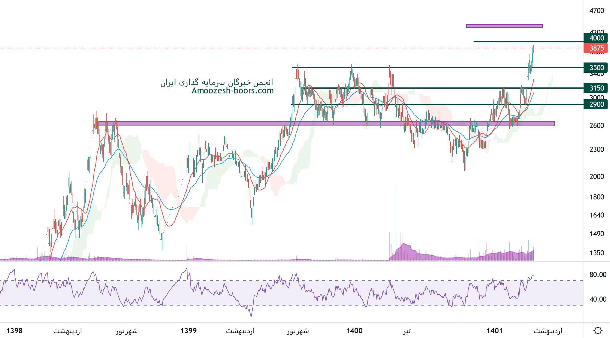 نماد بموتو در حال حاضر نزدیک محدوده 4000 ریال قرار دارد، در صورت افزایش فشار خرید و عبور از این سطح مقاومتی، مقاومت بعدی محدوده 4300 ریال ارزیابی میگردد، سهم در محدوده پر ریسک تکنیکالی قرار دارد، و در صورت اصلاح، اولین محدوده حمایتی 3500 ریال در نظر گرفته خواهد شد.