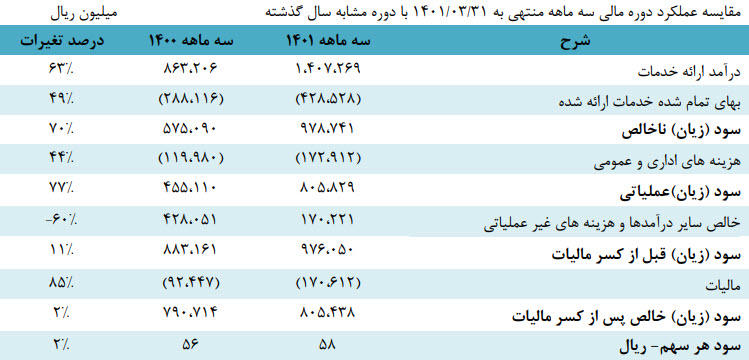 بهای تمام شده ارائه خدمات سهم بورس در سه ماهه نخست سال 1401 معادل 429 میلیارد ریال ميباشد که در مقایسه با دوره مشابه سال 1400 ، 49 درصد افزایش یافته است که این افزایش عمدتا به دلیل افزایش هزینه حقوق و دستمزد و هزینه استهلاک تاسیسات و ساختمان سعادت آباد و افزایش هزینه تعمیر و نگهداری و افزایش قابل ملاحظه سطح عمومي قیمت ها مي باشد.