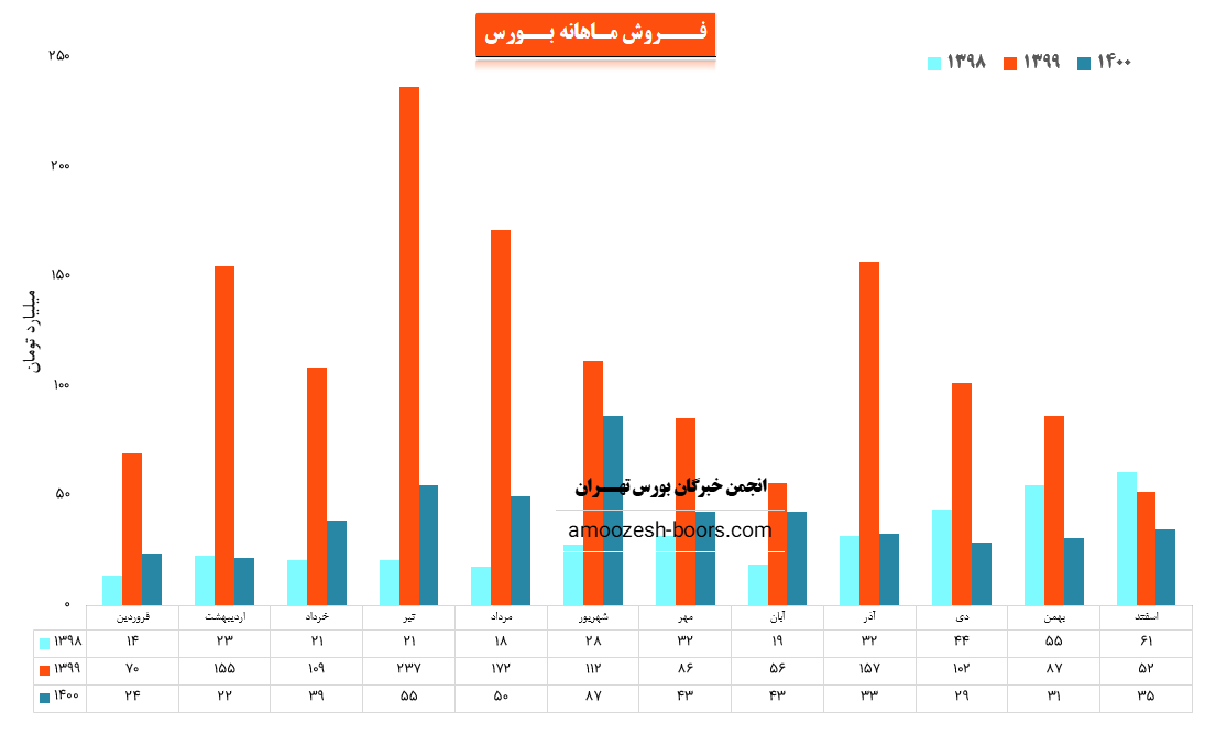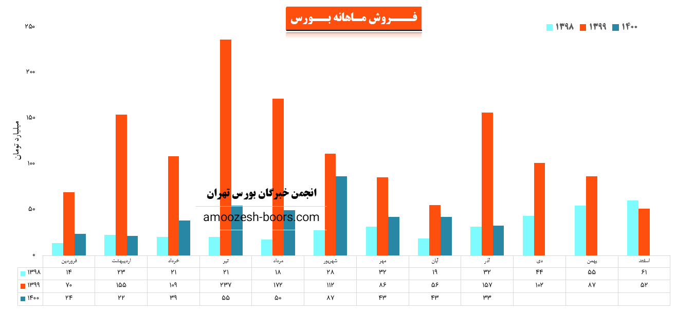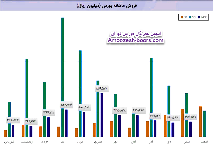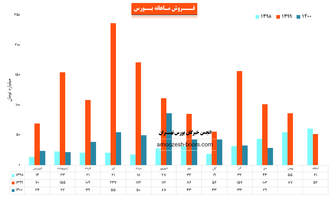 سهم بورس طی عملکرد بهمن ماه خود معادل 30.7 میلیارد تومان درامد را گزارش نموده است که این رقم نسبت به دوره 1 ماهه مشابه سال قبل 65% کاهش داشته است.سهم بورس با سرمایه ثبت شده 14,000,000 میلیون ریال طی عملکرد 11 ماهه سال مالی منتهی به 1400/12/29 مبلغ 4,704,912 میلیون ریال درآمد فروش داشته است که نسبت به مدت مشابه سال قبل 65% افت داشته است.عملکرد ماهانه سهم بورس نشان دهنده بی رونقی بازار سرمایه میباشد چرا که هرچه انجام معاملات درین بازار بیشتر ، درآمد سهم بورس بعنوان یک شرکت فراکابی نیز بالا میرود. عمدتا شناسایی درآمد درین شرکت ها بلند مدت و در بازه های 5 ساله میباشد.