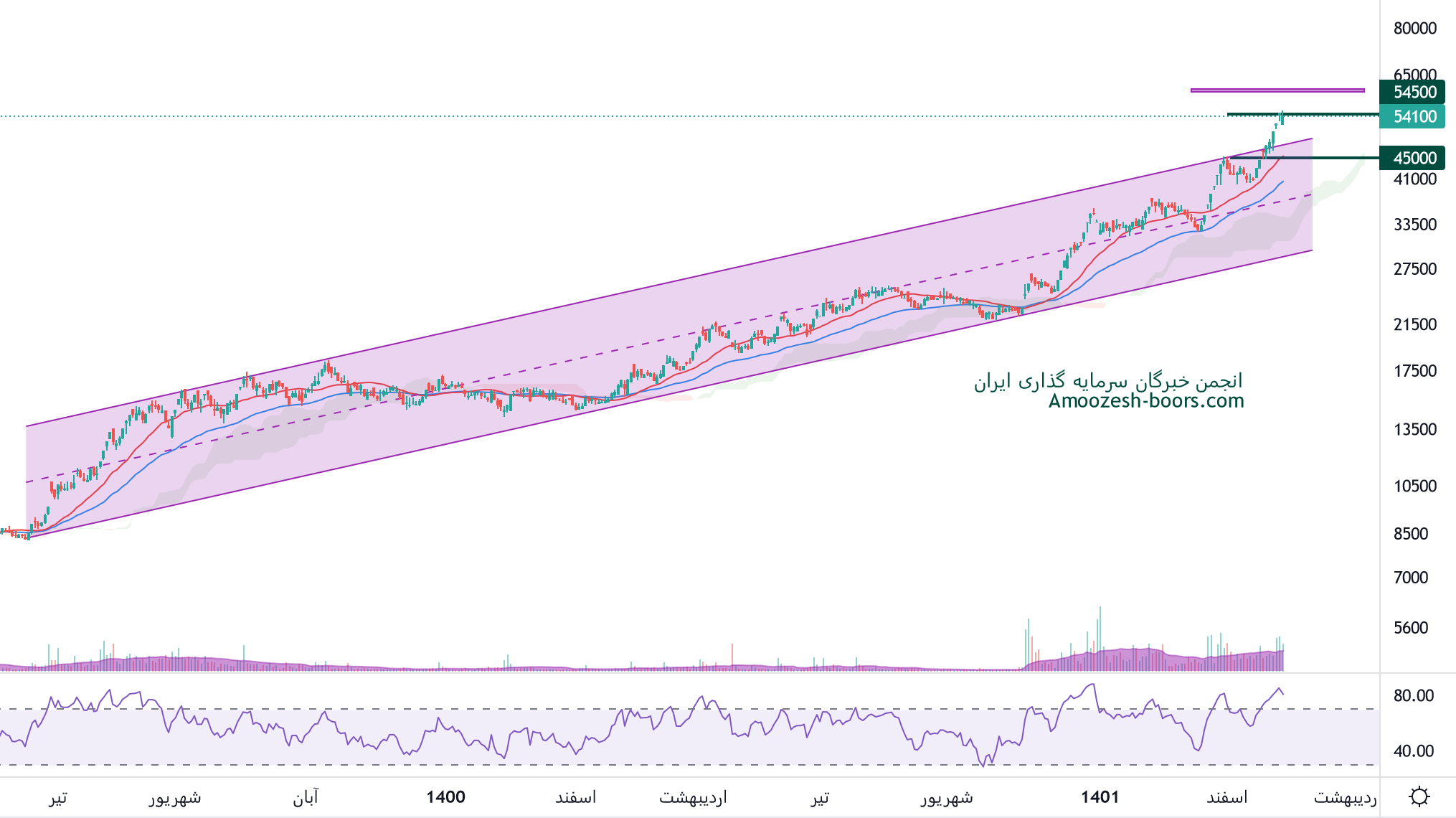 نماد بوعلی درگیر سطح مقاومتی 54500 ریال میباشد، در صورت ادامه دار شدن فشار تقاضا و عبور قیمت از این سطح مقاومتی، حرکت قیمت سهم بوعلی تا محدوده 60000 ریال محتمل خواهد بود، همچنین در صورت ورود قیمت به فاز اصلاحی، اولین حمایت سهم 50000 ریال خواهد بود.