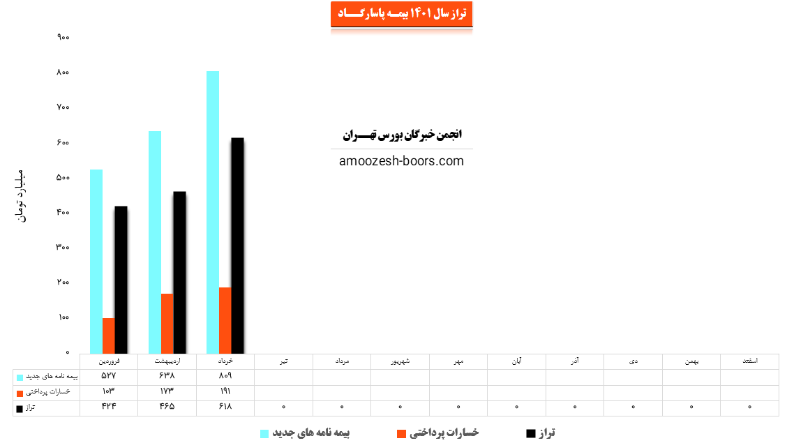 بیمه پاسارگاد در دوره یک ماهه منتهی به 29 اسفند ماه 1400، مبلغ 1,071.7 میلیارد تومان از محل فروش حق بیمه درآمد و همچنین مبلغ 348.4 میلیارد تومان به عنوان خسارت پرداختنی داشته است. شرکت در این دوره تراز مثبت 723.3 میلیارد تومان (208%) را ثبت کرده است. تراز شرکت در این دوره نسبت به ماه قبل 65% افزایش و نسبت به میانگین ماه های قبل 70% افزایش داشته است. شرکت نسبت به دوره 1 مشابه سال قبل 65% افزایش تراز داشته است.