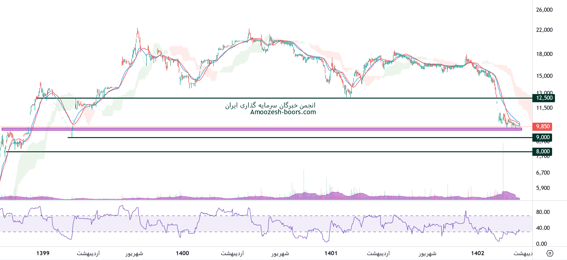 بعد از اصلاحی که روی چارت انجام شده قیمت به محدوده امنی رسیده است، محدوده حمایت بپاس محدوده 9800 ریال ارزیابی میگردد، در صورت تثبیت قیمت در این محدوده و ثبت کندل های مثبت، میتوان انتظار حرکت قیمت تا محدوده 12500 ریال را داشت، همچنین در صورت ادامه دار شدن اصلاح و از دست رفتن حمایت نماد بپاس که در بالا ذکر شد، حمایت بعدی 9000 ریال خواهد بود.