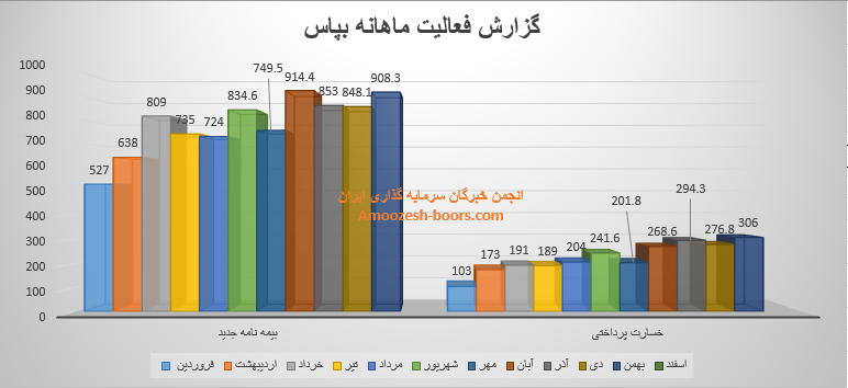 بیمه پاسارگاد با رشد 7 درصدی حق فروش بیمه نامه به درآمد 908.3 میلیارد تومانی رسیده است، همچنین خسارات پرداختی سهم بپاس با رشد 11 درصدی به رقمی معادل 306 میلیارد تومان رسیده است، تراز سهم بپاس در بهمن ماه مثبت 197% گزارش شده، درآمد نماد بپاس طی عملکرد 11 ماهه مشابه سال گذشته بوده است.