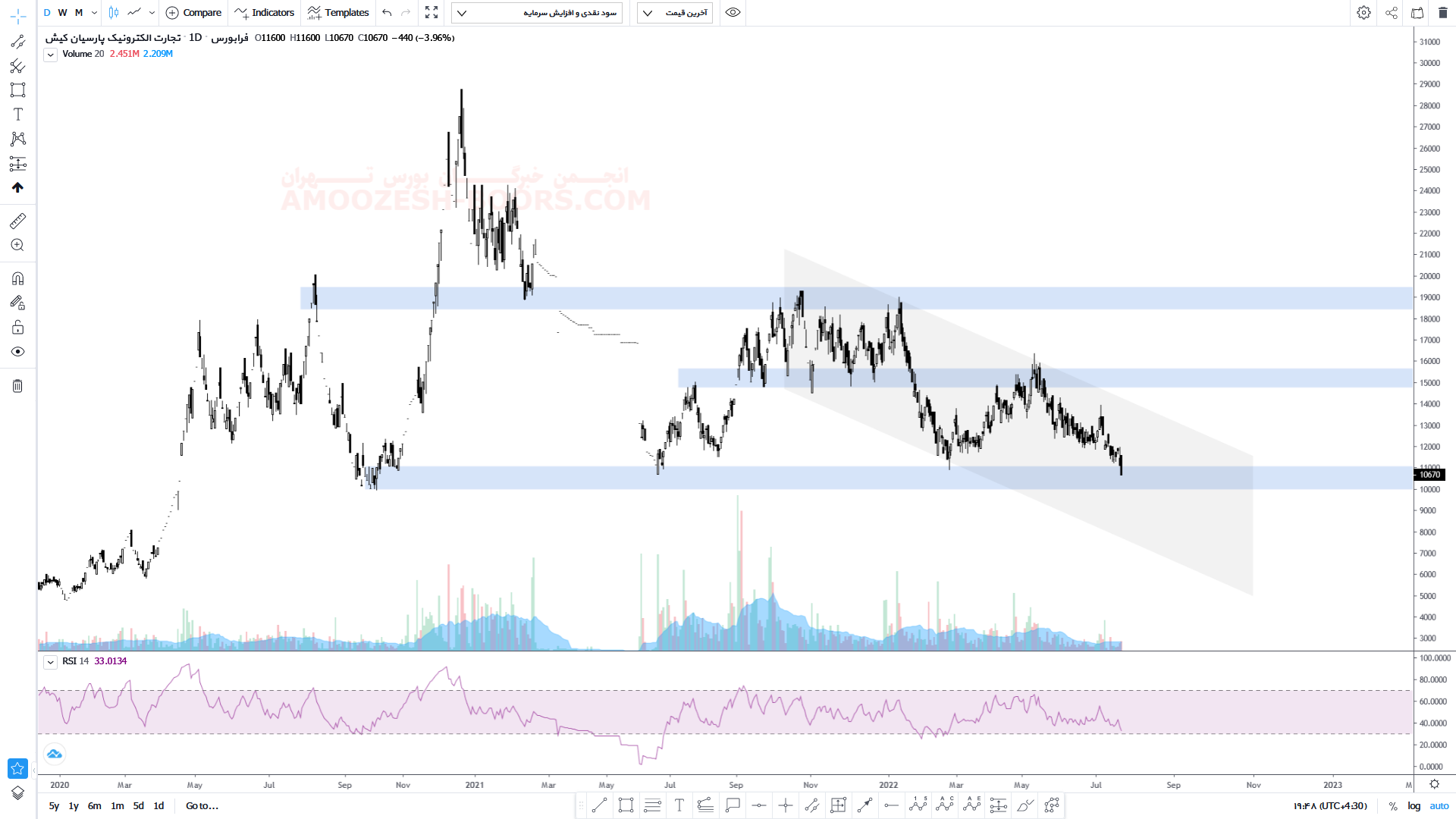 قیمت سهم تاپکیش پس از بروز واکنش منفی نسبت به ناحیه مقاومتی 1500 تومان وارد اصلاح شده و اکنون نیز ناحیه حمایتی قوی 1000 تومان را پیش روی خود دارد که در صورت حمایت می تواند با شکست سقف کانال نزولی مجدد ناحیه مقاومتی ۱۵۰۰ تومان را تست کند اما در صورت از دست دادن این ناحیه حمایتی می تواند تا کف کانال نزولی اصلاح خود را ادامه دهد.