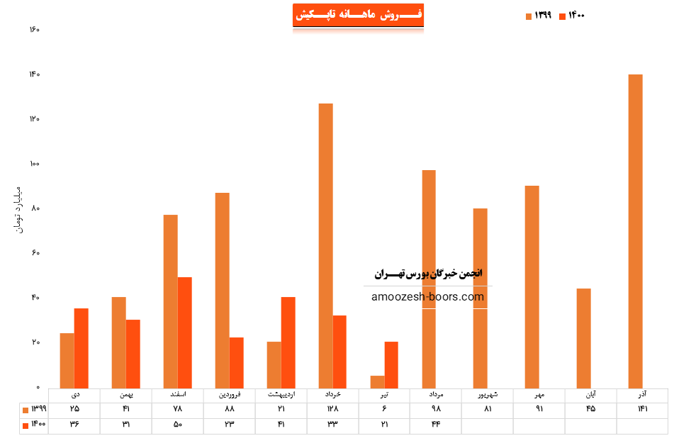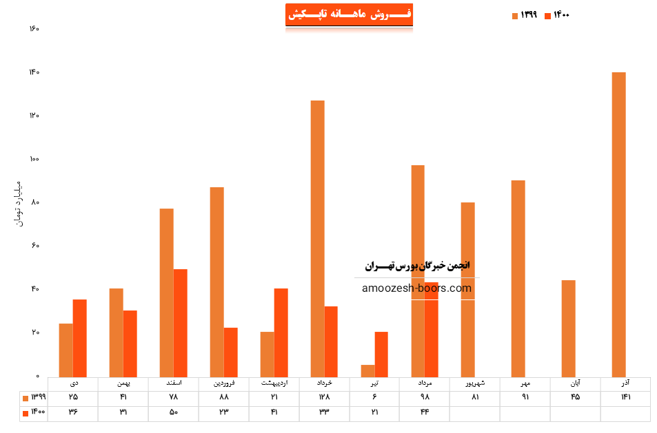 سهم تاپکیش (شرکت تجارت الکترونیک پارسیان کیش) در عملکرد مهر ماه خود معادل 310,540 میلیون ریال از محصولات خود را به فروش رسانده است که نسبت به دوره 1 ماهه مشابه سال قبل 66% کاهش داشته است.همچنین درآمد شرکت نسبت به ماه قبل 31 درصد و نسبت به میانگین ماهانه نیز 14 درصد کاهش داشته است.