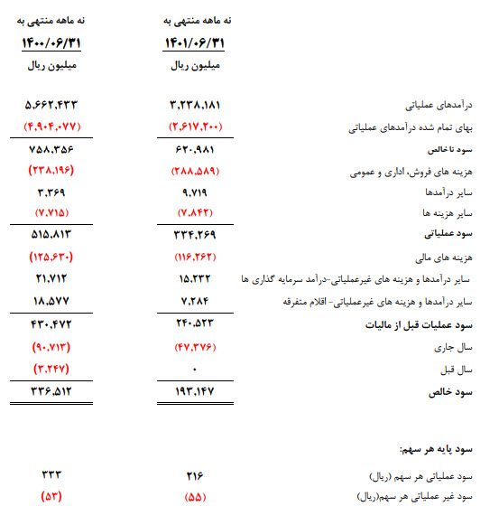 همچنین درآمد شرکت مجموعا طی عملکرد 9 ماهه سال مالی نسبت به مدت مشابه سال قبل افت 43% داشته است.