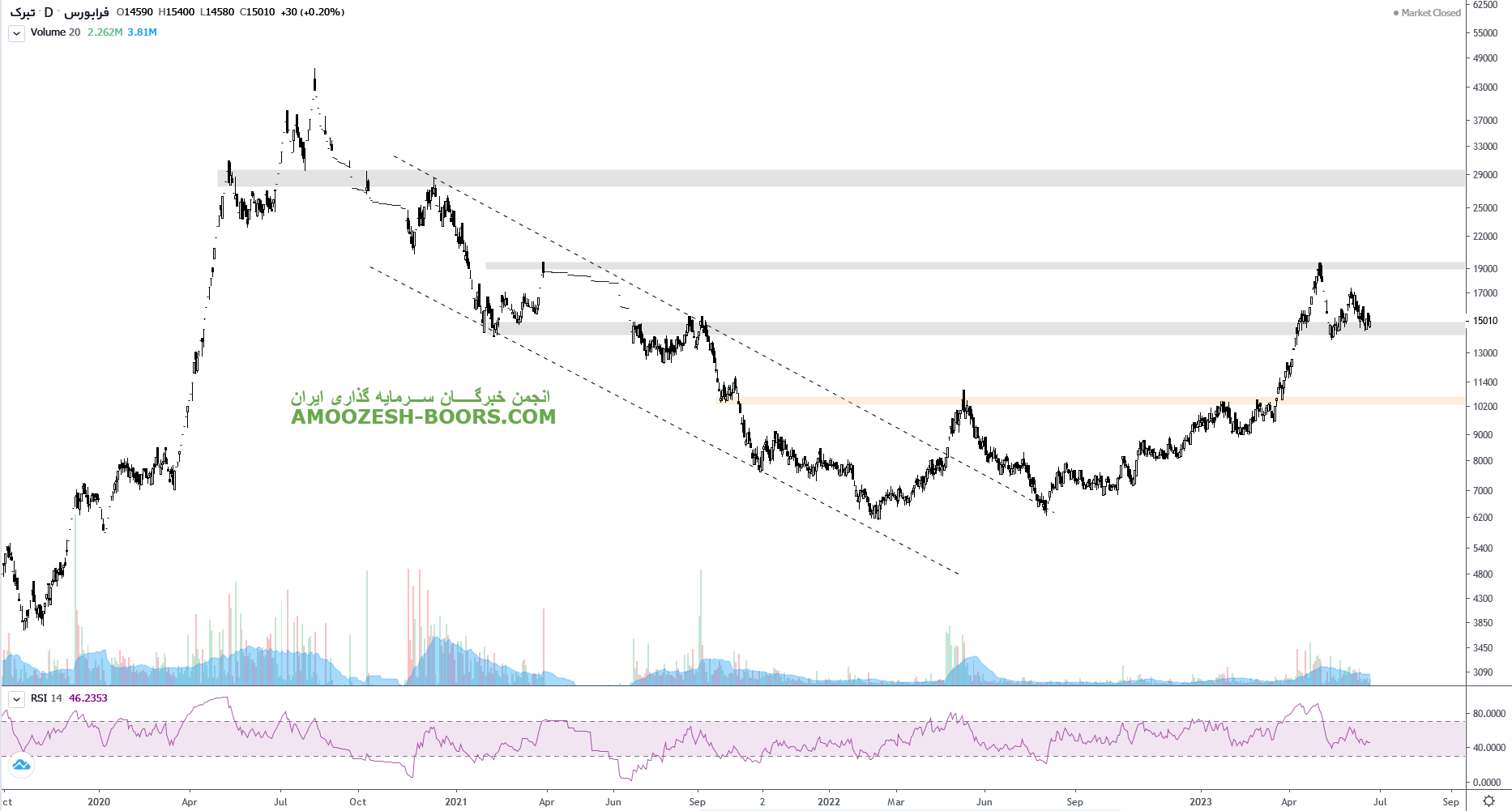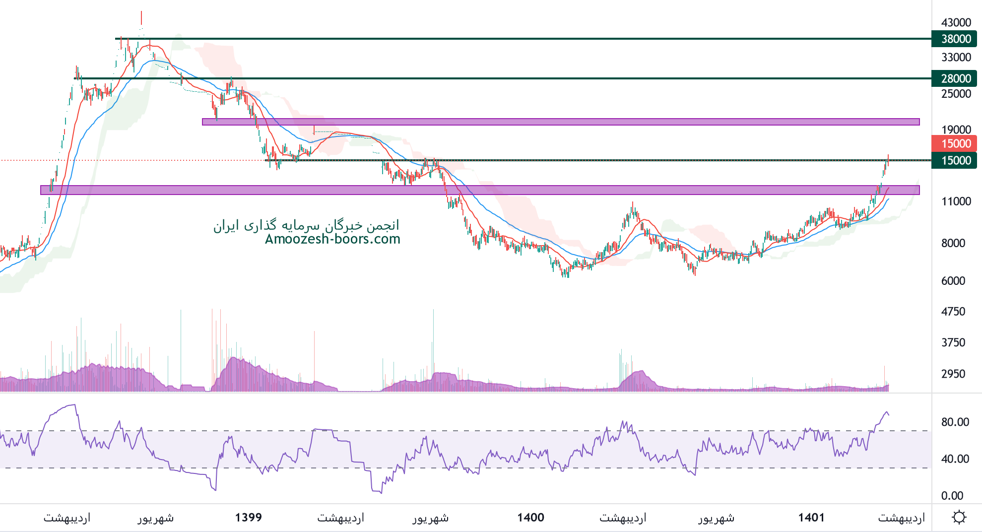 نماد تبرک درگیر سطح مقاومتی مهم 15000 ریال میباشد، محدوده مقاومتی بعدی 20000 ریال میباشد، همچنین در صورت سناریوی اصلاحی، اولین حمایت سهم تبرک محدوده 12000 ریال در نظر گرفته خواهد شد.