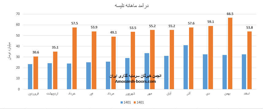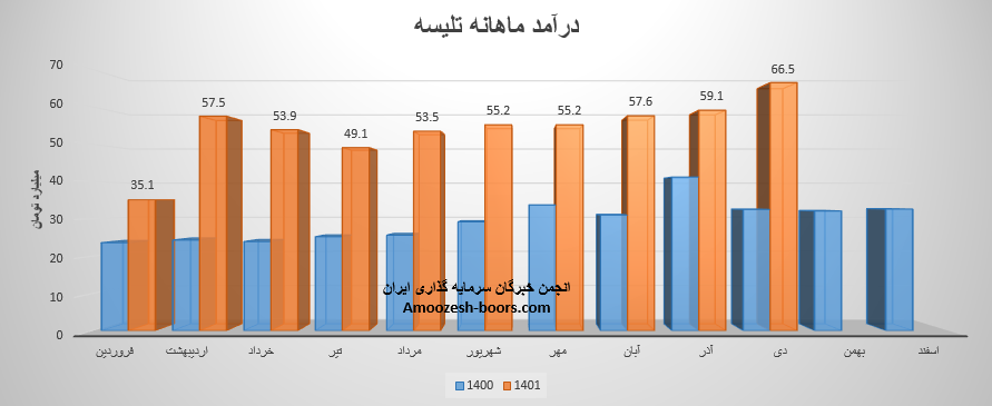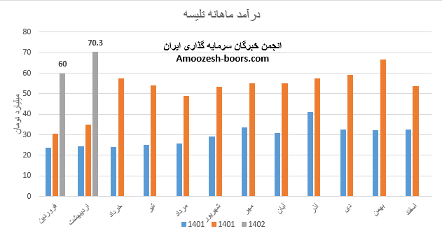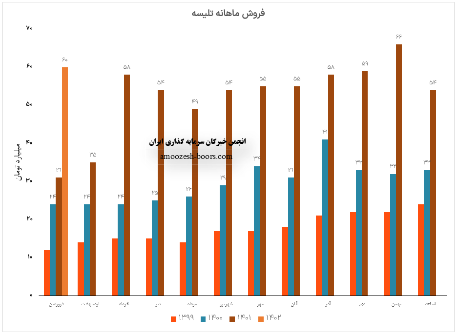 نماد تلیسه (شرکت دامداری تلیسه نمونه) در فروردین ماه 1402 حدود مبلغ 60 میلیارد تومان درآمد داشته که این میزان در مقایسه با ماه گذشته 11% و همچنین در مقایسه با مدت مشابه سال گذشته 94% رشد پیدا کرده است.