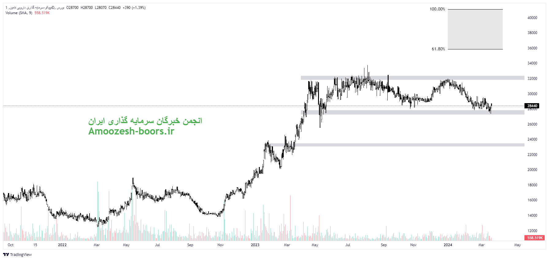 حمایت تیپیکو 27500 ریال: این سطح بهعنوان یک نقطه حیاتی برای جلوگیری از اصلاح بیشتر قیمت عمل میکند، اگر قیمت به زیر این سطح نفوذ کند، انتظار میرود که حمایت بعدی در محدوده 25500 ریال قرار داشته باشد.