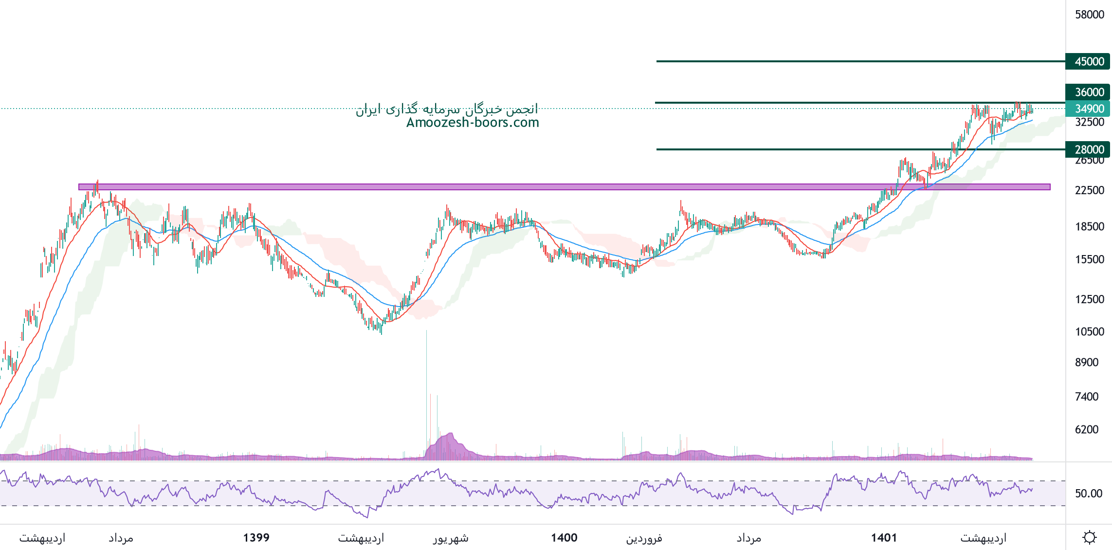 نماد تیپیکو در حال نوسان پشت سطح مقاومتی 36000 ریال میباشد و اصلاح خود را به صورت زمانی پیش میبرد، در صورت ادامه دار شدن روند صعودی و عبور قیمت از این سطح، مقاومت بعدی 45000 ریال ارزیابی میگردد، همچنین در صورت ورود سهم تیپیکو به فاز اصلاحی، 28000 ریال اولین حمایت سهم در نظر گفته خواهد شد، چارت تیپیکو در حال حاضر ریسک بالایی دارد.