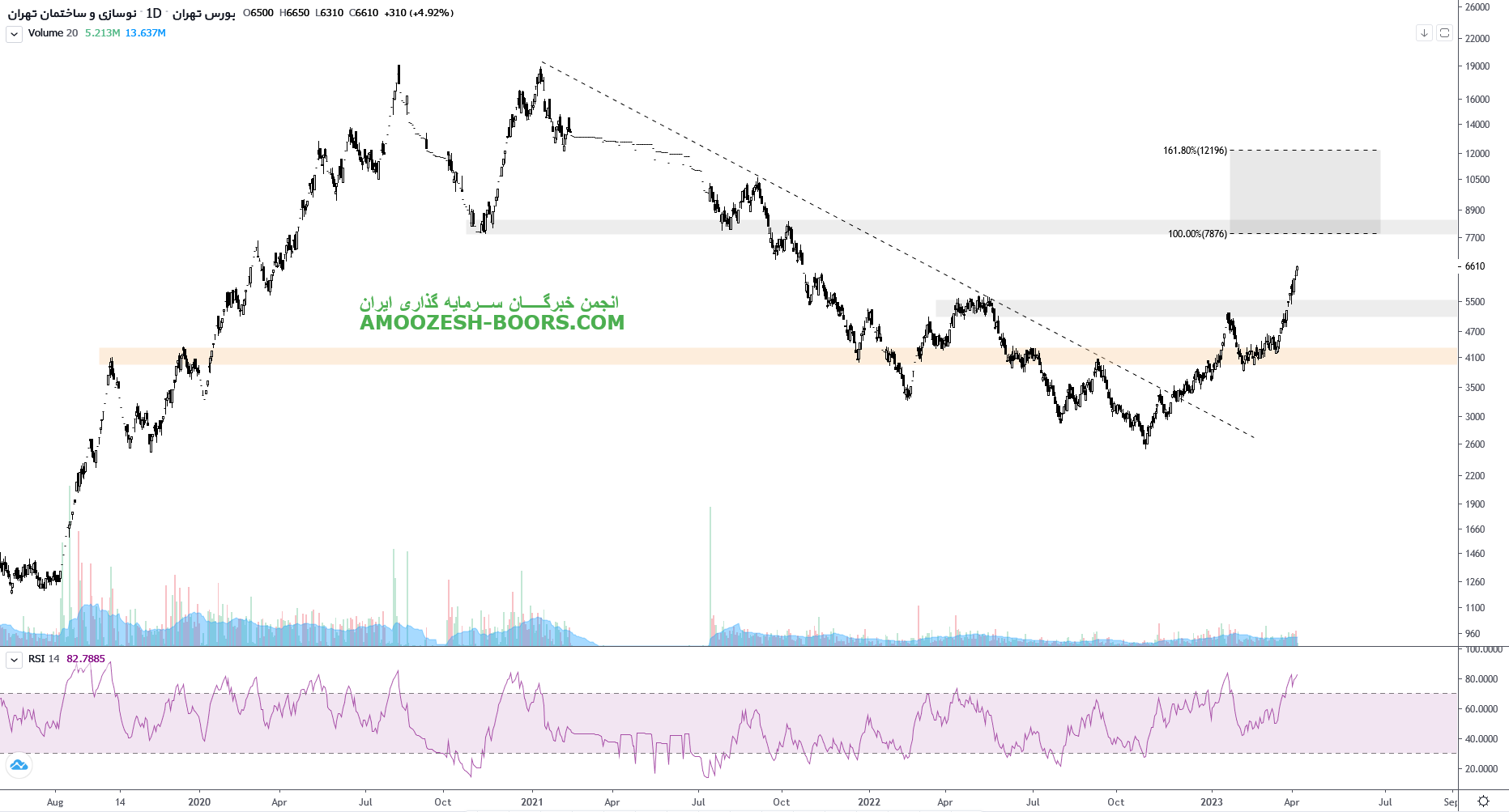 نماد ثنوسا درگیر محدوده مقاومتی 8500 ریال میباشد، در صورت ورود به فاز اصلاحی حمایت های ثنوسا به ترتیب 6700 و 5100 ریال در نظر گرفته خواهد شد، همچنین در صورت ادامه دار بودن روند صعودی و عبور قیمت از محدوده مقاومتی، مقاومت های بعدی 11000 و 14000 ریال خواهند بود.