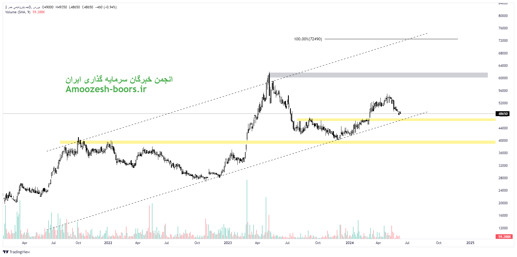 نزدیکترین حمایت به سهم جم ناحیه 47000 ریال در نظر گرفته خواهد شد همچنین در صورت ایجاد تقاضا در کلیت بازار و رشد از ناحیه مذکور، مقاومتهای نواحی ۶۱۰۰۰ ریال و 73000 ریال مهمترین مقاومتهای سهم جم در مسیر صعودی تعیین شده اند. همچنین در صورت از دست رفتن حمایت ناحیه ۴۷۰۰۰ ریال حمایت بعدی سهم جم ناحیه 40000 ریال در نظر گرفته خواهد شد.