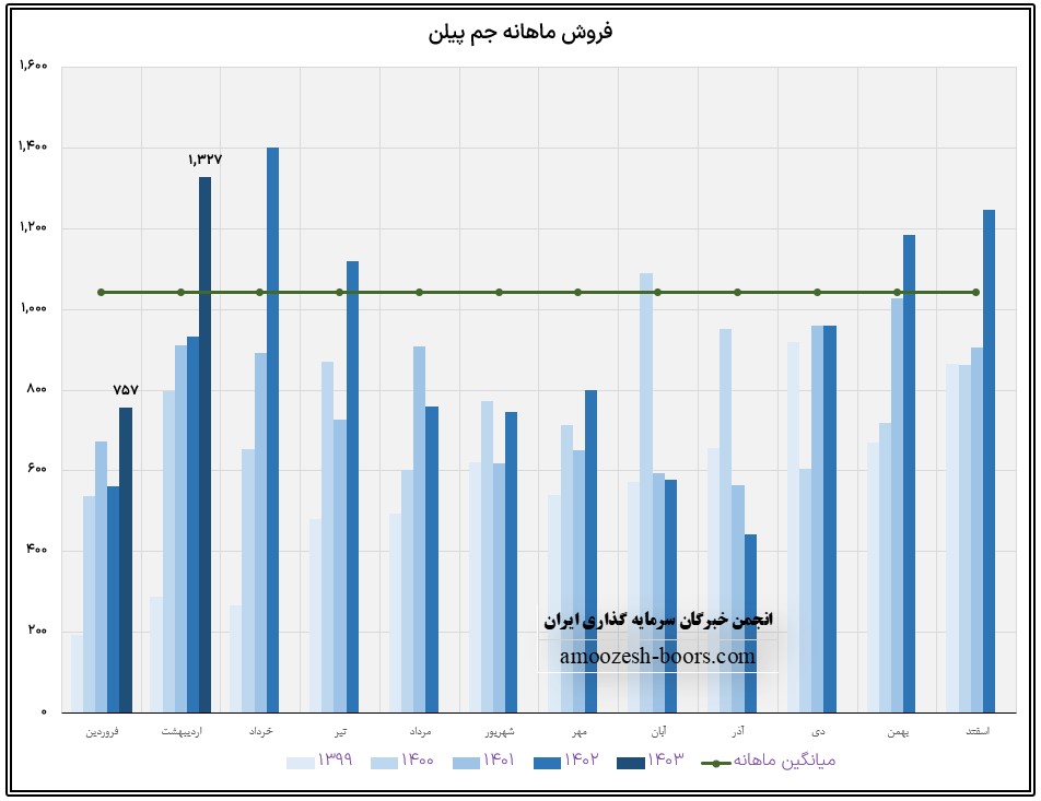 جم پیلن در خرداد ماه حدود بیش از 19000 تن از محصولات خود را به فروش رساند که این میزان در مقایسه با حجم فروش ماه گذشته حدود 21% کاهش پیدا کرده است.