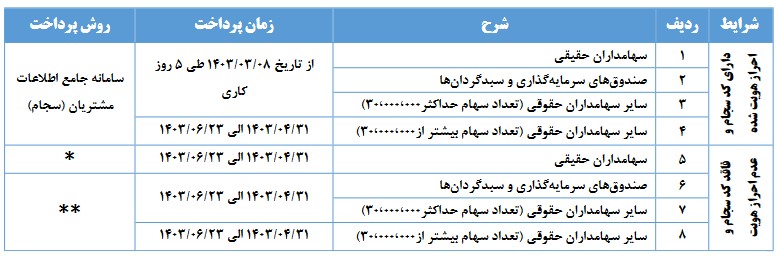 مجمع عمومی عادی سالانه سهم جم پیلن در تاریخ یکشنبه مورخ ۲۳ اردیبهشت ماه سال ۱۴۰۳ و با حضور بیش از ۹۲ درصد از سهامداران برگزار گردید که در آن ضمن تصویب صورتهای مالی سالانه شرکت حدود مبلغ ۲۴۳۰۰ ریال معادل ۹۰ درصد از سود محقق شده در سال مالی گذشته به عنوان سود نقدی بین سهامداران تقسیم شد.