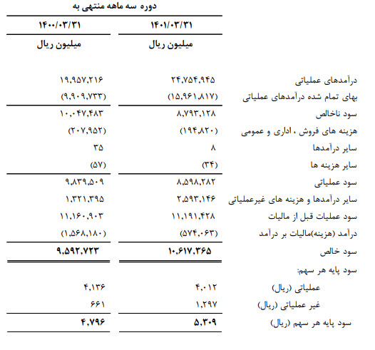 همچنین افزایش 24 درصدی درآمدهای عملیاتی سه ماهه اول سال 1401 ناشی از افزایش مقدار فروش در بازار داخلی، کسب گردیده است.