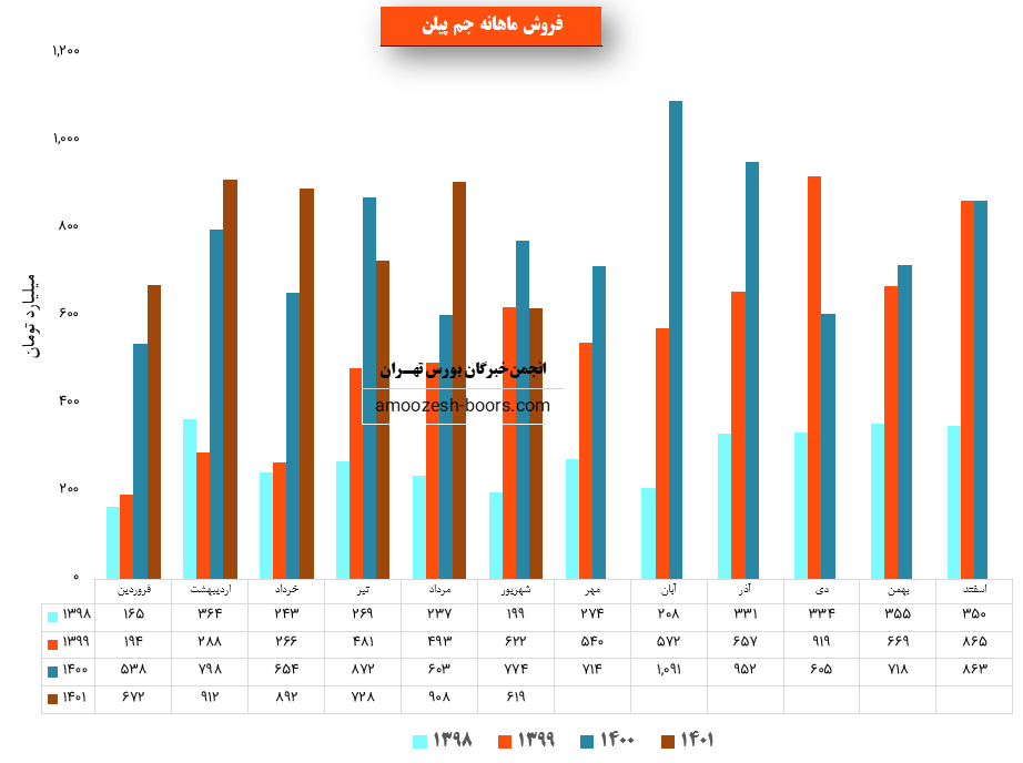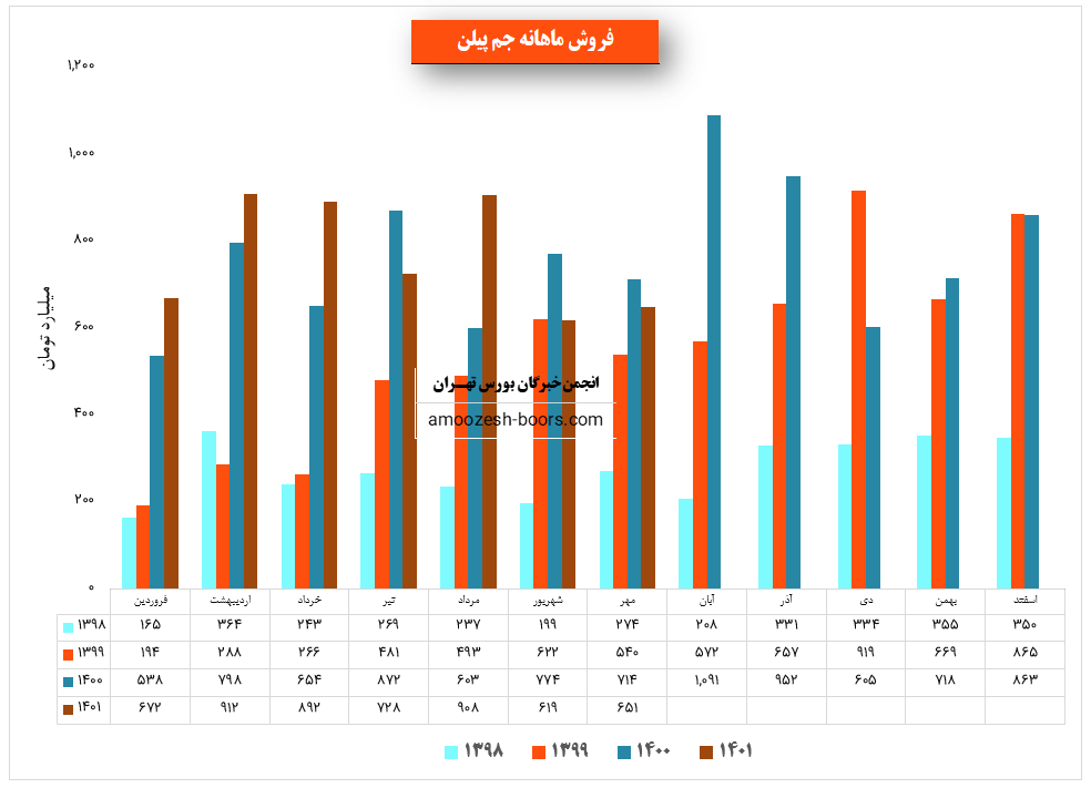 نماد جم پیلن با ثبت فروش 4700 میلیارد تومانی در پایان شش ماهه ابتدایی سال توانست حدود ۴۴ % از پیش بینی فروش سالانه خود را محقق سازد.