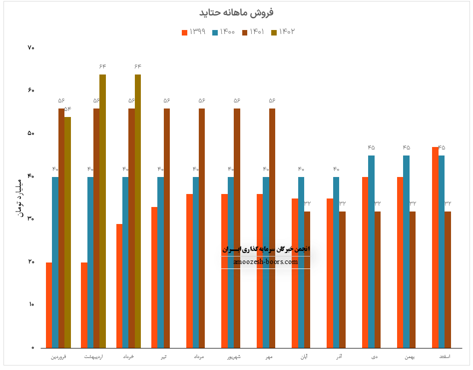 • ضمنا سهم حتاید با ثبت فروش ۳۳۶۳ میلیارد تومانی در پایان سال ۱۴۰۱ توانست حدود 400% بیشتر از پیش‌بینی فروش سال خود را محقق سازد