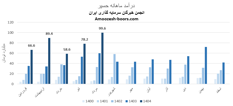 سهام حسیر از ابتدای سال مالی تا پایان مرداد 1404، مجموع درآمد ثبت شده شرکت به 392 میلیارد تومان رسیده که نسبت به مدت مشابه سال گذشته 79 درصد رشد داشته، و در همین حال 69 درصد از کل درآمد سال گذشته تحقق یافته است.