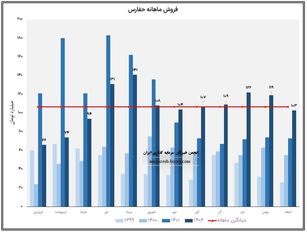 شرکت بین المللی حمل و نقل خلیج فارس ( حفارس ) در بهمن ماه 1402 فروش 119.3 میلیارد تومانی را به دست آورده که کاهش 2 درصدی در مقایسه با ماه گذشته و همچنین رشد 13 درصدی نسبت به متوسط ماهانه داشته است،