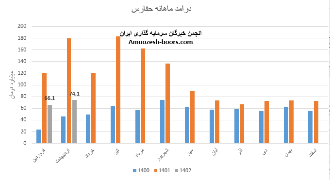 نماد حفارس (شرکت بین المللی حمل و نقل خلیج فارس) در اسفند ماه 1401 حدود مبلغ 73 میلیارد تومان درآمد داشته که این میزان در مقایسه با ماه گذشته 1% کاهش و همچنین در مقایسه با مدت مشابه سال گذشته 33% رشد پیدا کرده است.