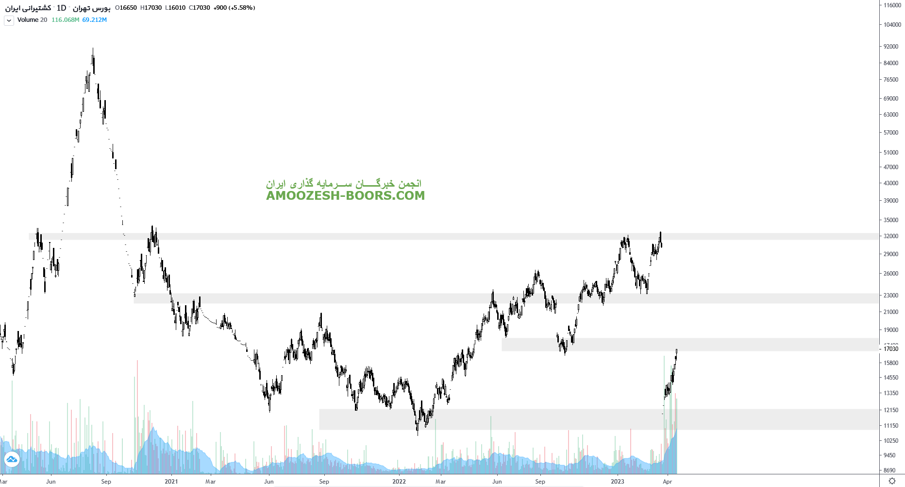 قیمت سهم حکشتی بر روی مقاومت مهم ناحیه ۱۷۰۰ تومان قرار گرفته است که می تواند با عبور از این ناحیه رشد خود را تا مقاومت ناحیه ۲۳۰۰ تومان نیز ادامه دهند. همچنین در صورت تمایل قیمت به اصلاح اولین حمایت از همه کشتی ناحیه ۱۲۰۰ تومان تعیین شده است.