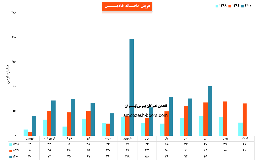 خاذین در دی ماه 86 میلیارد تومان محقق نموده است که افزایش 45 درصدی نسبت به ماه گذشته و رشد 28 درصدی نسبت به مدت مشابه سال گذشته را نشان میدهد .