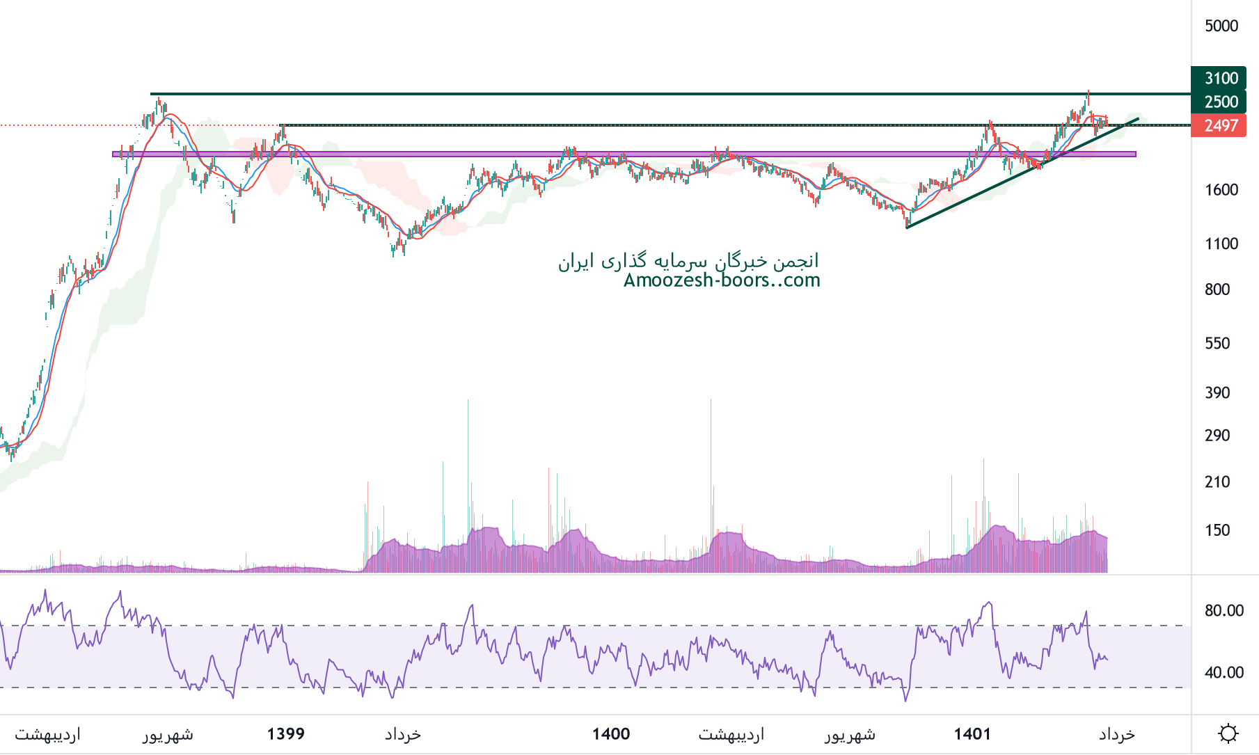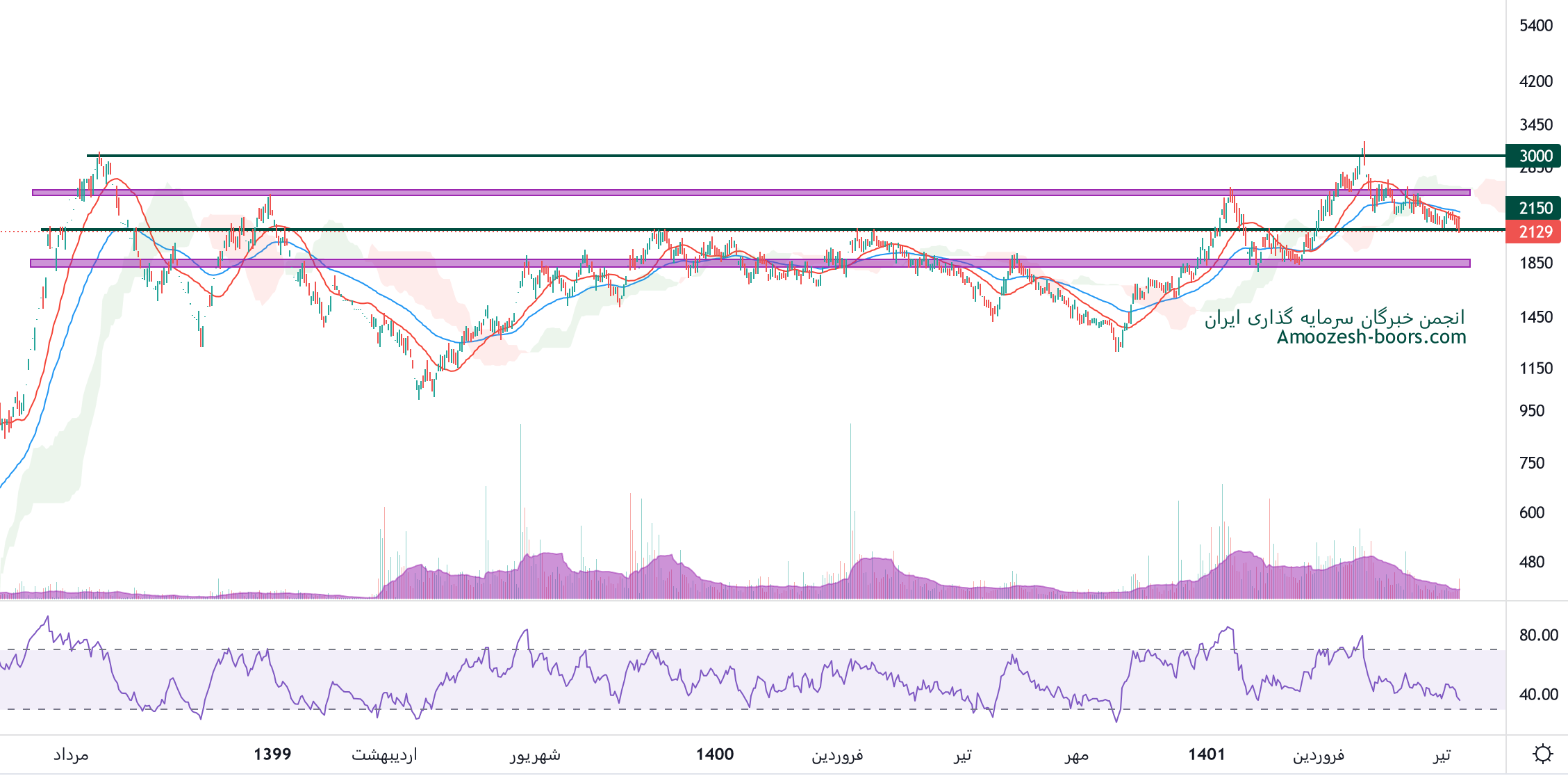 نماد خبهمن در حال اصلاح میباشد و در حال حاضر حمایت 2150 ریال را دارا میباشد، در صورت تثبیت قیمت تارگت های خبهمن 2500 و 3000 ریال خواهند بود، همچنین در صورت از دست رفتن محدوده حمایتی ذکر شده، حمایتن بعدی این نماد محدوده 1900 ریال ارزیابی خواهد شد.