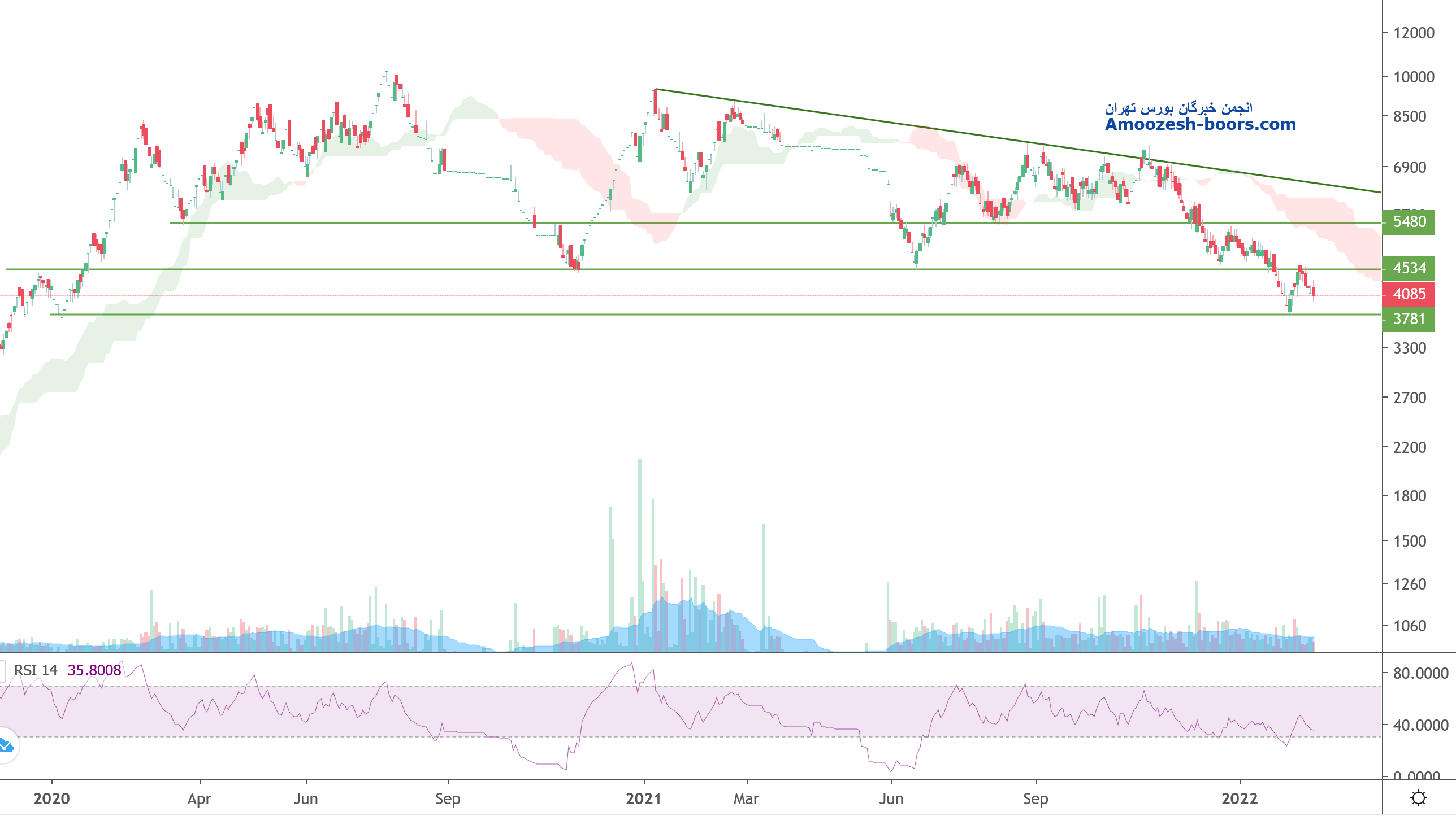 با توجه به واکنش قیمت به محدوده مقاومتی و ورود به فاز اصلاحی،اولین سطح حمایتی 3750 ریال در نظر گرفته خواهد شد و در صورت تثبیت مقاومت های سهم 4500 و 5500 ریال تا تست مقاومت داینامیک نزولی بر سر راه سهم قرار خواهد داشت.