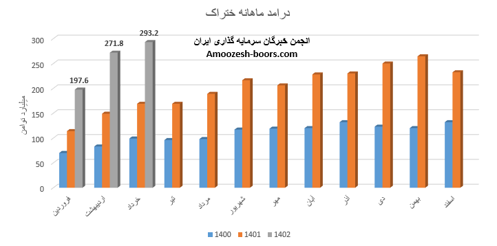 نماد ختراک با افزایش 1 درصدی درآمد نسبت به ماه قبل، فروش ماهانه خود را 283.2 میلیارد تومان اعلام نموده است، همچنین عملکرد ماهانه سهم ختراک نسبت به متوسط ماهانه 8% و نسبت به مدت مشابه 50% رشد داشته است، 16% از کل درآمد ختراک در مرداد ماه از طریق فروش صادراتی و مابقی از طریق فروش داخلی تامین گردیده است، قطعات ریخته چدنی به عنوان محصول اصلی سهم ختراک در مقایسه با ماه گذشته افزایش 15 درصدی نرخ فروش را تجربه نموده است، مقدار فروش این محصول نسبت به ماه گذشته 15% افت داشته است، مجموع عملکرد سهم ختراک از ابتدای سال مالی نسبت به مدت مشابه 68% رشد داشته است و طی این مدت 55% از کل درآمد سال گذشته محقق گردیده است.