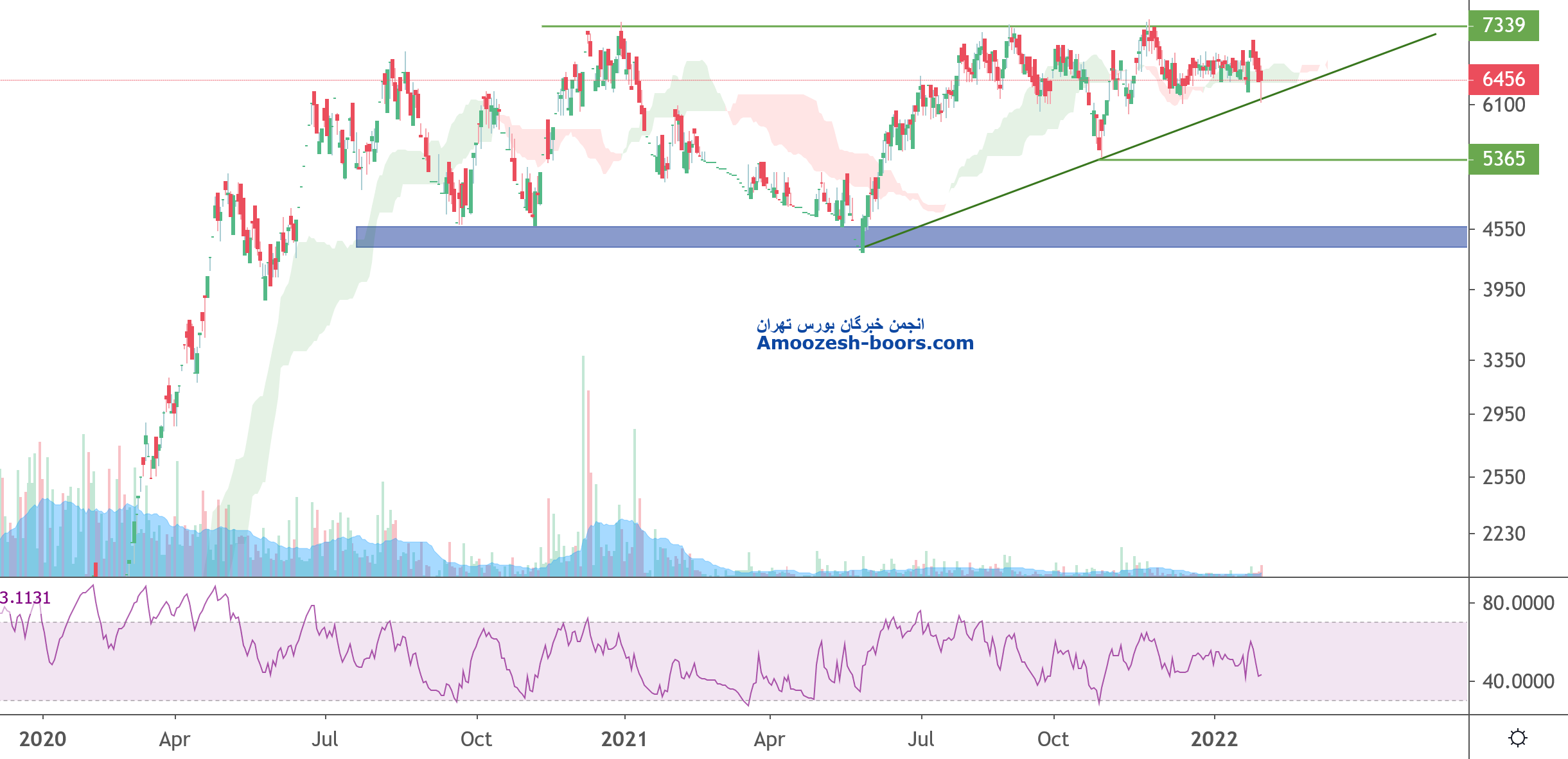 قیمت به حمایت داینامیک خود واکنش مثبت نشان داده،در صورت صعود اولین مقاومت سهم 7350 ریال خواهد بود و در صورت شکست این حمایت،حمایت بعدی سهم 5400 ریال خواهد بود و طبیعتا حد ضرر را فعال مینماید.
